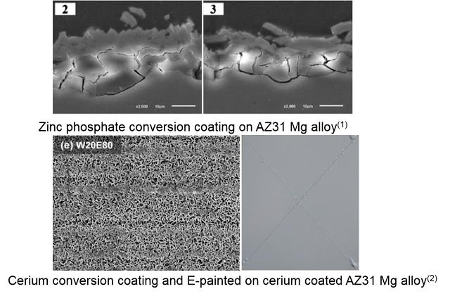 Hình 4. Lớp phủ hoá học kẽm phosphate hoặc cerium+ sơn trên bề mặt Mg AZ31